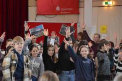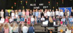 Die Kolleginnen dankten für die stets gute und vertrauensvolle Zusammenarbeit und insbesondere auch für die wohlwollend- kollegiale sowie wertschätzende Art des Umgangs miteinander. Diese Wertschätzung zog sich durch das gesamte Programm, das vom Schulchor musikalisch umrahmt wurde und großartige von den Kindern vorgetragene Höhepunkte wie einen Flashmob oder sehr persönliche Texte und Gedichte zu bieten hatte. Birgit Simons- Eger war darüber sichtlich gerührt und „total geflasht“, wie sie selbst sagte: „Das macht mir den Abschied noch schwerer. Ich werde euch alle sehr vermissen.“