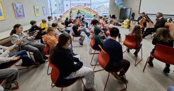 Der Besuch der beiden Musiker zeigte eindrucksvoll, wie lebendig und greifbar klassische Musik sein kann. Für viele Kinder war es eine besondere Erfahrung, die Instrumente nicht nur aus dem Unterricht zu kennen, sondern sie aus nächster Nähe zu hören und zu erleben – ein musikalischer Vormittag, der sicher noch lange in Erinnerung bleiben wird.